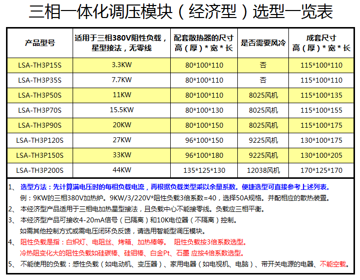 注:50KW-100KW的大功率負(fù)載可采用我公司智能型一體化調(diào)壓模塊,具有輸出顯示和溫度顯示,全新一代的產(chǎn)品,詳情請咨詢我公司。