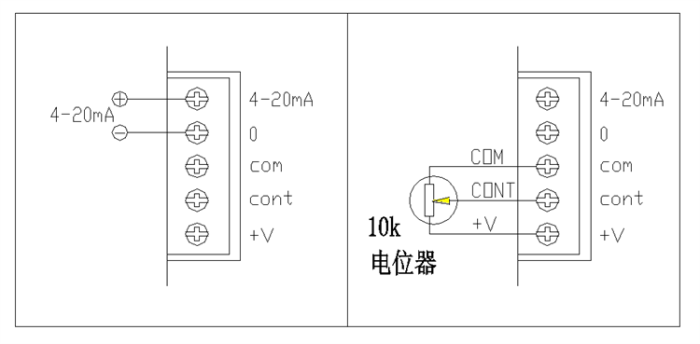 4、 本產(chǎn)品不需要外接工作電源。如需讓模塊停止輸出,可斷開4-20mA控制信號或者斷開電位器,模塊即停止輸出。