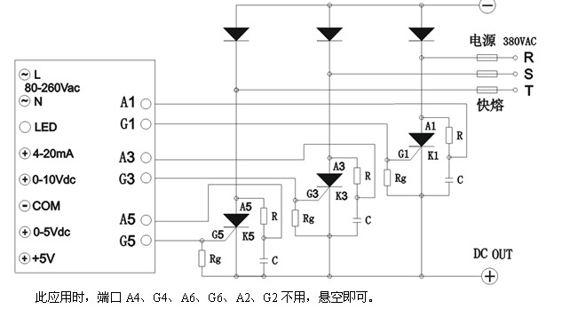 3、模塊各功能端的控制特性均為正特性,即控制電壓越高,模塊強(qiáng)電主回路輸出電壓越高。