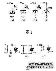 雙向可控硅是一個三端元件,但我們不再稱其兩極為陰陽極,而是稱作T1和T2極,G為控制極,其控制極上所加電壓無論為正向觸發(fā)脈沖或負向觸發(fā)脈沖均可使控制極導通,在圖1所示的四種條件下雙向可控硅均可被觸發(fā)導通,但是觸發(fā)靈敏度互不相同,即保證雙向可控硅能進入導通狀態(tài)的最小門極電流IGT是有區(qū)別的,其中(a)觸發(fā)靈敏度最高,(b)觸發(fā)靈敏度最低,為了保證觸發(fā)同時又要盡量限制門極電流,應(yīng)選擇(c)或(d)的觸發(fā)方式。